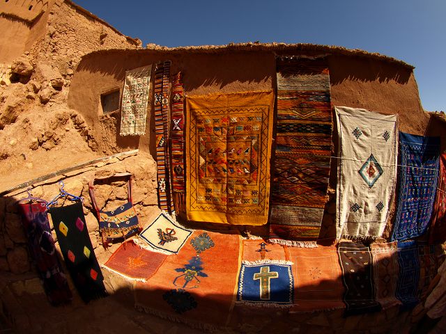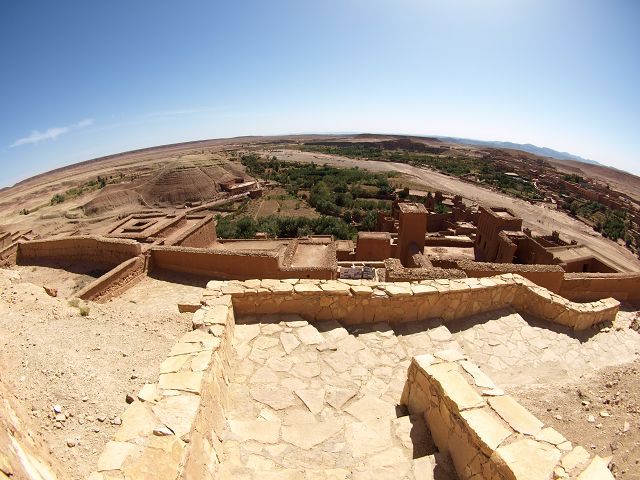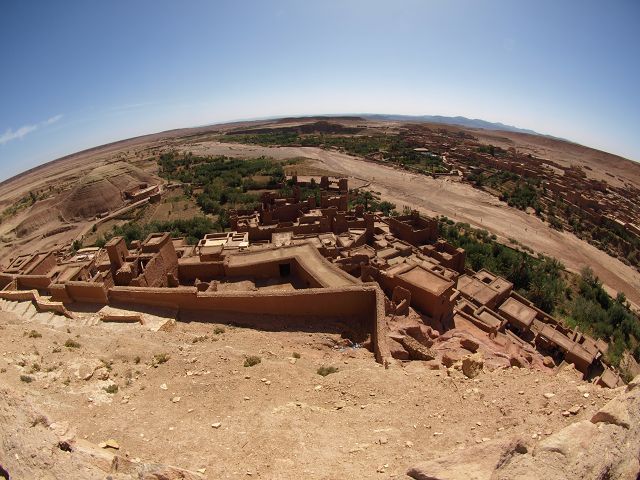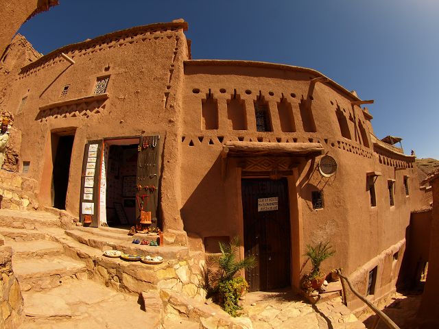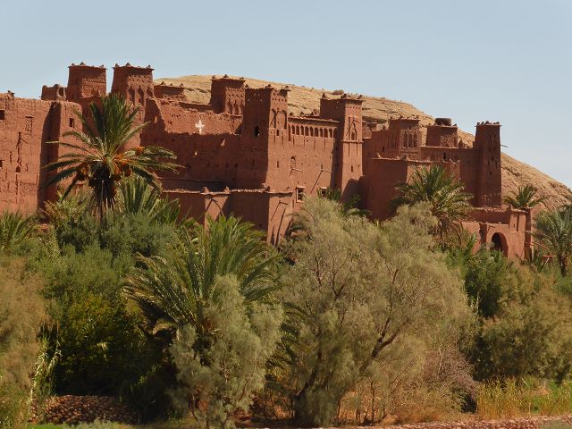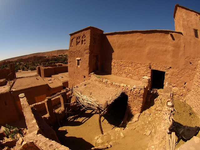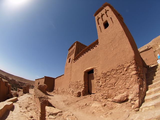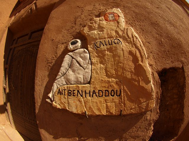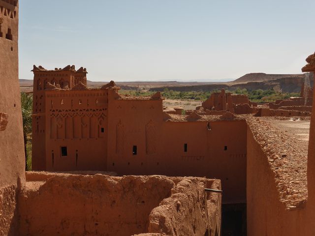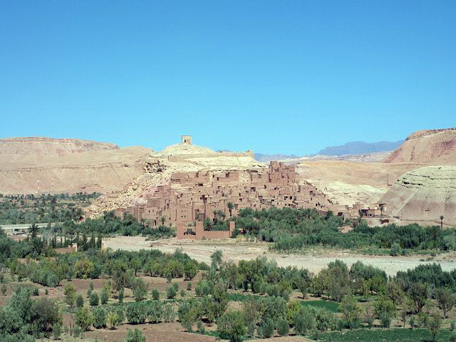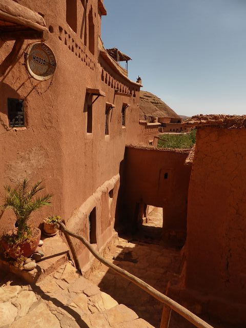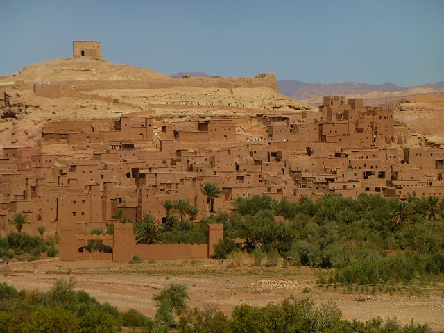 am Berghang gelegenes Ksar ,befestige Wohnanlage aus halbwegs gut erhaltenen Lehmbausiedlungen eng aneinander gebauten und teilweise ineinander verschachtelten Wohnburgen aus dem 1100 Jahrhundert an der alten Karawanenstrasse von Timboctou nach Marrakech  30 km nördlich von Quarzazate entfernt , Schauplatz für über 20 Spielfilme  Gladiator , Sodom + Gomorrha  Alexander etc.