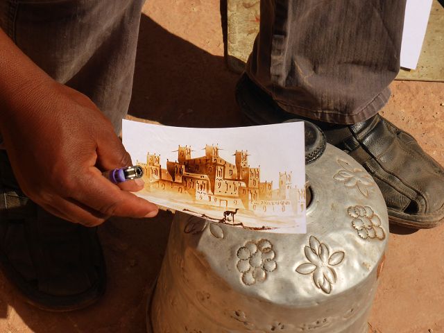 Ait Benhaddou Hennazeichnung Enstehung des Hennabildes mit Flamme Ait Benhaddou Hennazeichnung Enstehung des Hennabildes mit Flamme