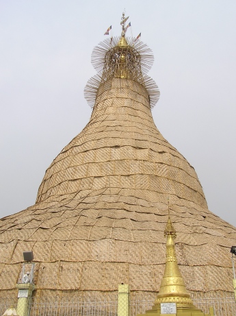 Sule Pagode in Yangon - von Bambus-Baugerüst und Bastmatten als Bauplane eingehüllt Pagode mit Schlafanzug aus Bamusmatten Shwe heißt Golden