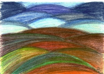 zurück        Pindaya     Ölkreidezeichnung     Felder im Gebiet um Pindaya  Painting Fields in the area around Pindaya
