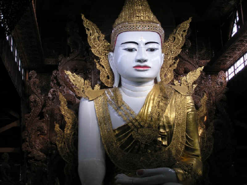 10 m hoher  Budda mit wunderschönen Holzgeschnitzten Wandschirmen in der Ngadatkhyi  Pagode