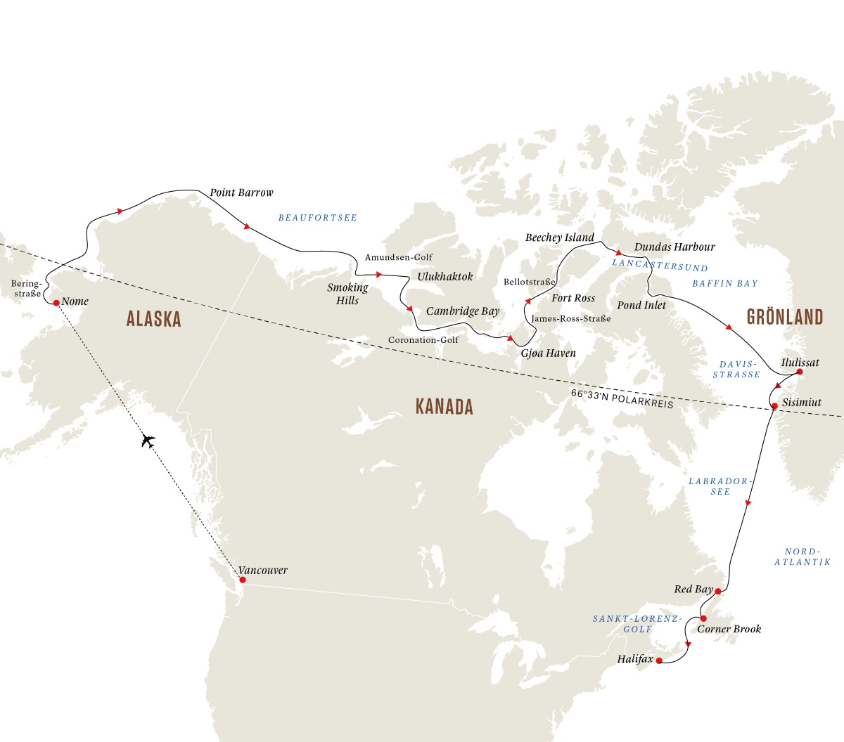 sagenumwobene Nordwest-Passage an, bei denen Sie die