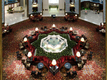 The Al Bustan Palace is a luxury hotel located in Muscat, the capital city of Oman. It's one of the most iconic and prestigious hotels in the region, known for its grandeur, stunning location, and impeccable service. The hotel is located at the base of the Hajar Mountains and overlooks the coastline of the Gulf of Oman, offering breathtaking views.