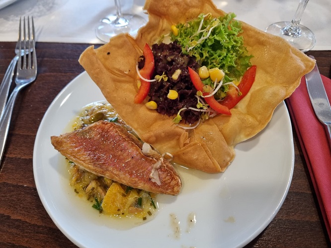 | Hotel Phönix Restaurant Speisen Rotbarbe | Hotel Phönix Restaurant Schweineschwäntzchen |
