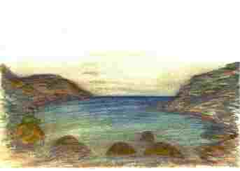 Gemälde Zeichnung Skizze  Tsambika Tsampika Bucht Ostküste von Rhodos neben Kolymbia  Anthony Quinn Bucht neben der Ladiko Bucht  Ostküste von Rhodos neben Faliraki