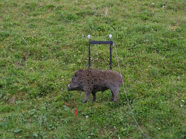 | Murmel Bär Luchs Wolf Kojote Uhu Birkhahn Hirsch Reh Rabe am Pendel | laufender Keiler |