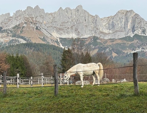 Mit Blick auf das Bergmassiv „Wilder Kaiser“