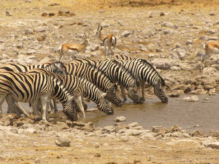 Namibia, with herds often seen around waterholes, especially during
