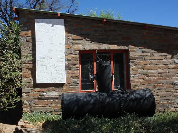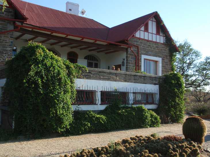Erste und somit älteste Gästefarm Namibias an der historischen "Bay Road" (=Ochsenwagenweg), auf Ihrem Weg zu Etoscha oder Swakopmund. Das aus Naturstein gebaute Farmhaus aus der Siedlerzeit bietet einen fantastischen Ausblick in die umliegende Savanne des privaten Naturschutzparks mit vielen wilden Tieren wie Giraffe, Zebra, Nashorn, Leopard , gepard usw.