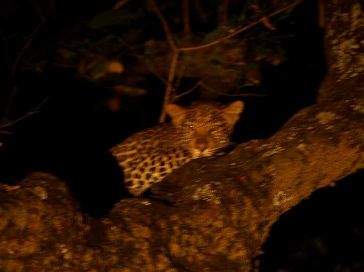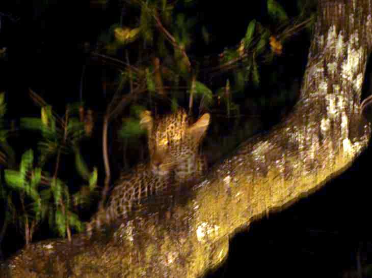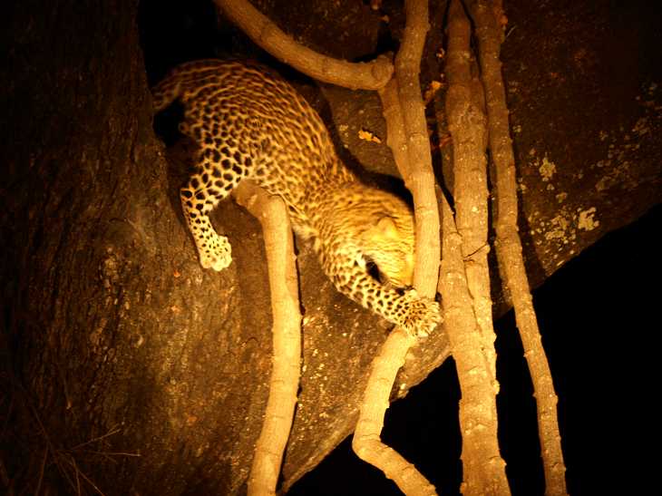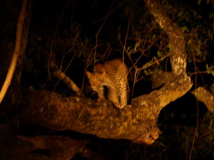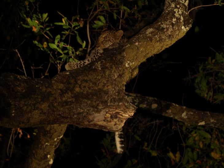 Leopard auf dem Leberwurstbaum junger Leopard  Night Gamedrive