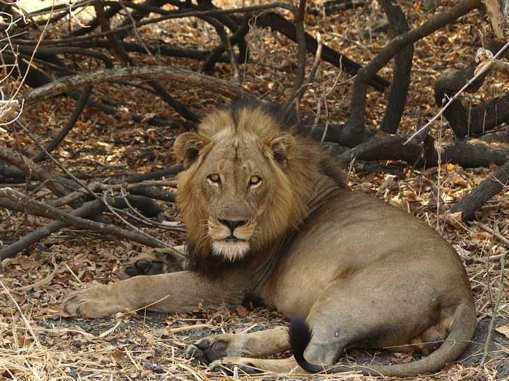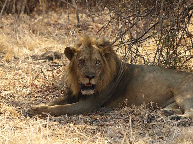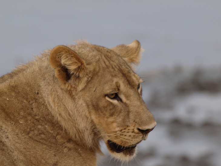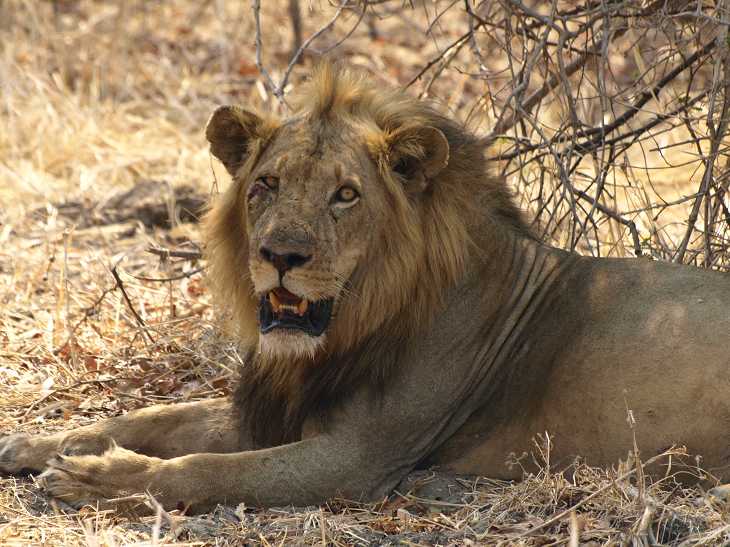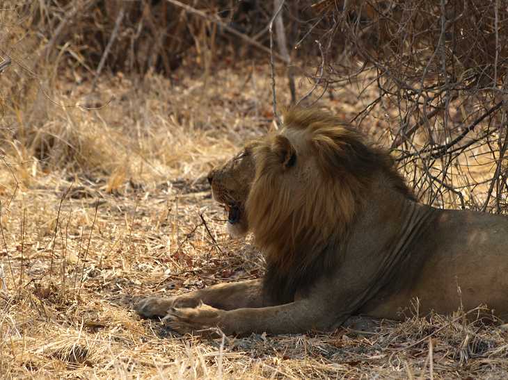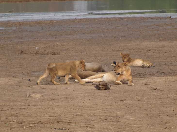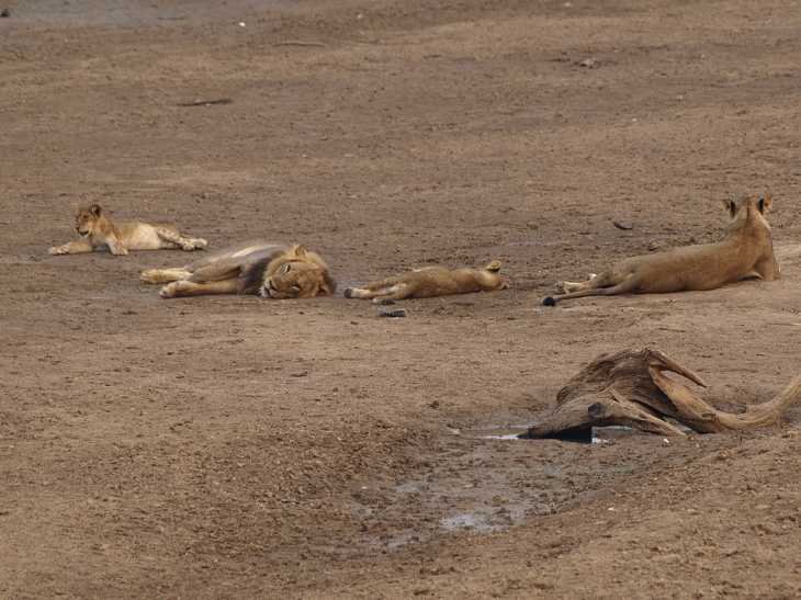 Löwe auf der Sandbank Löwe satt von Zebramahlzeit