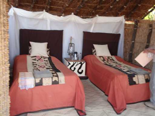 Zimmer von aussen  mit Safarichefin Zimmer von innen