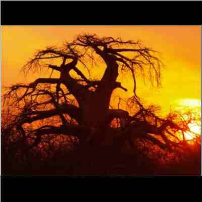 | Klein Bolayi Game Lodge Sonnenuntergang mit baobab | Klein Bolayi Game Lodge Die 4-Sterne-Lodge Sonnenuntergang mit baobab |