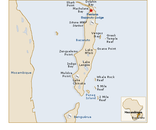 Wallriff, das eine schmale Führung zwischen Bazaruto
