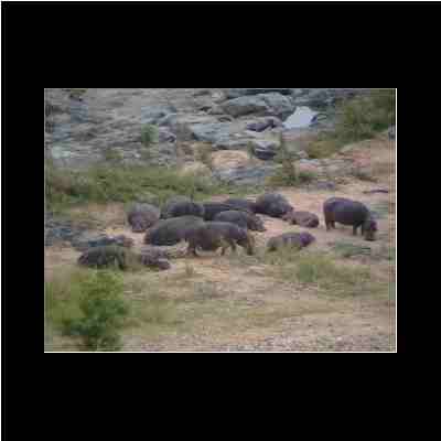 Herde mit über 50 Tieren am Aussichtpunkt Olifantsriver Kämpfende Jungbullen Neugeborenes Flusspferdchen ca 1 Woche alt