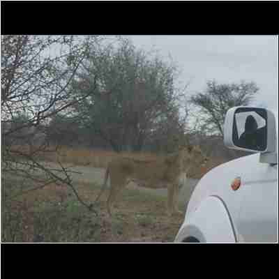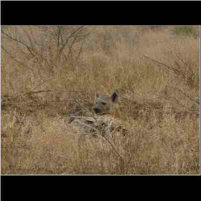 schläfrige Hyäne Löwin kreuzt den Weg   Auf dem Weg zur Schule