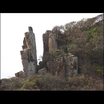 Felsen, wo man durchsehen kann und mit einem Boot durchfahren kann.