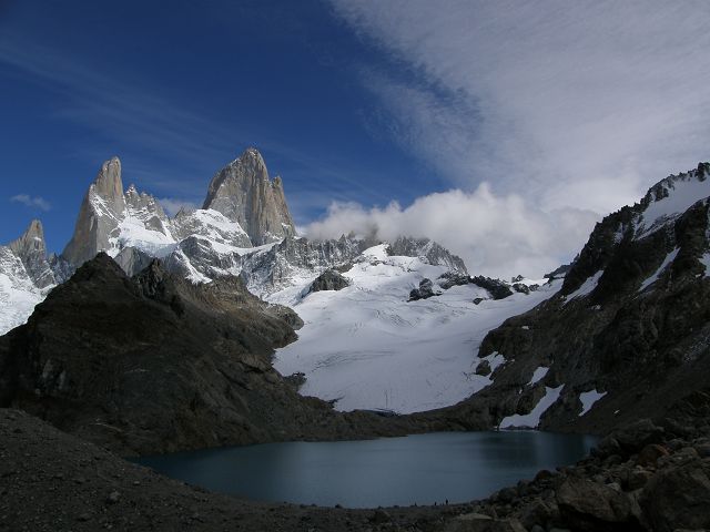| Cerro Fitz Roy | Laguna tres mit einer der 10 nt schönsten Wanderungen der Welt Laguna de los Tres , eines Gletschersees direkt unter dem Fitz Roy Massiv Gesamtdauer 8 Stunden und ca 2000 Höhenmeter im Auf + Abstieg |