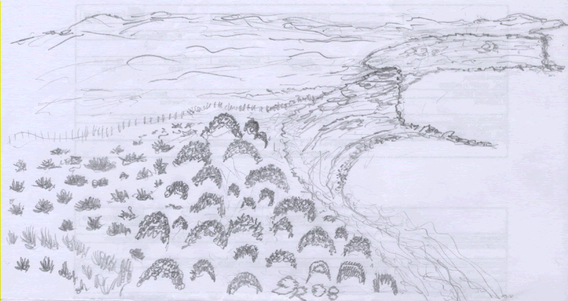 | 4 Seeelefanten und ein Junges Punta valdez | Skizze Valdez |