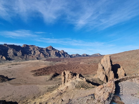 Roque de García is a stunning rock formation located in the heart of Teide National Park on the island of Tenerife, one of the Canary Islands. The formation is part of the island's striking volcanic landscape and is a popular destination for visitors who want to experience the unique geological features and breathtaking scenery of the park. It is also an excellent spot for hiking, photography, and enjoying the natural beauty of Mount Teide, the highest peak in Spain.