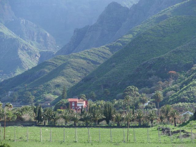 In einem der fruchtbarsten und schönsten Bachtäler der Insel, mit Zitronen-, Orangen-, Avokado-, und Kaffeebaumpflanzungen. Das Anwesen befindet sich im Nordwesten Gran Canarias, ca. 45 Km von der Inselhauptstadt Las Palmas und ca. 60 Km vom Flughafen entfernt. Zur Kleinstadt Agaete, wo sich im Laufe der Jahre Bildhauer, Dichter und Maler niedergelassen haben, sind es ungefähr 3 Km. Von dort aus erreicht man das kleine Fischerdorf Puerto de las Nieves (ca. 1,8 Km) mit seinen diversen Fischlokalen, dem Kieselstrand mit Bademöglichkeiten, der Hafenmole (Angeln) und einem wunderschönen Ausblick auf die eindrucksvolle Steilküste und den Felsen "Finger Gottes", der sich an der Playa de las Nieves aus dem Meer erhebt.