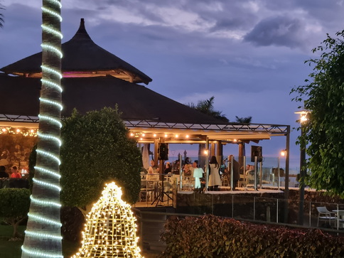 otel-Barcelo-Santiago Teneriffa   Video https://www.youtube.com/watch?v=Sz58d0VM84s Hotel-Barcelo-Santiago Aussenbereich restaurant  Frühstück Mittag und Abendessen mit Blick auf Gomera und seitlich Gigantes