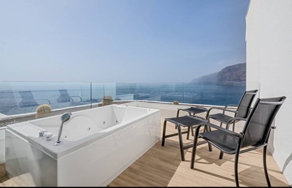 Die Lage und der Ausblick ist fantastisch. X-mal beschrieben und unglaublich schön. Allein dieser Ausblick auf das Meer und die Steilküste ist Erholung pur. Die Sonnenuntergänge jeden Abend sind wunderbar und schaffen eine herrliche Atmosphäre. Alles kann man auch vom Balkon aus geniessen. Ringsrum sind nur einige Touristen- geschäfte und einige Restaurants sowie ein paar Bars. Also kein Nachtleben wie etwa in Playa las Americas. Sehr angenehm und dadurch auch nicht ständiger Lärm durch feiernde Touristen. In Los Gigantes, 20 Minuten Fussweg, ist auch nicht allzu viel los, alles etwas ruhiger. Aber das ist sehr angenehm. Nach Santiago läuft man auch ungefähr 20 Minuten. Etwas anstrengend aber immer schöne Sicht. Von beiden Orten fahren die öffentlichen Busse in verschiedene Richtungen der Insel. Taxis stehen vor dem Hotel und sind sehr günstig. 5,00 Euro zu beiden Orten. Wer also auf Ruhe Wert legt ist hier richtig. Zu erwähnen ist noch, es gibt am Hotel keinen Sandstrand dafür ein eine herrliche Felslandschaft mit ständigem Meeresrauschen. Hotelausstattung: