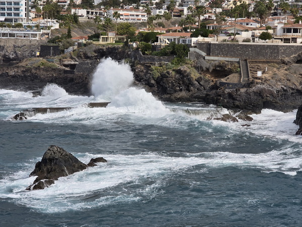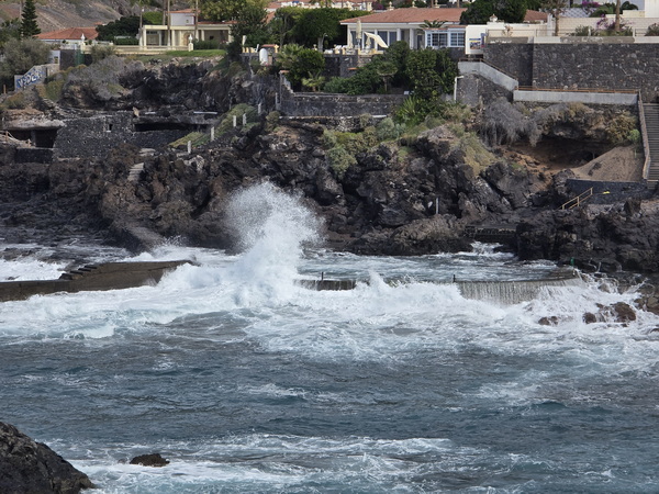 | Charco de Isla Cangrejo sehr hohe Welllen | Charco de Isla Cangrejo Wellenwarung Meerschläge bis 9 m |