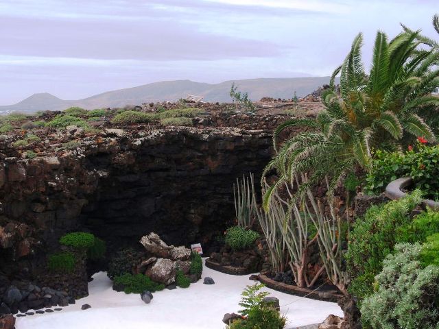 to the arid volcanic conditions of Lanzarote. The garden provides a