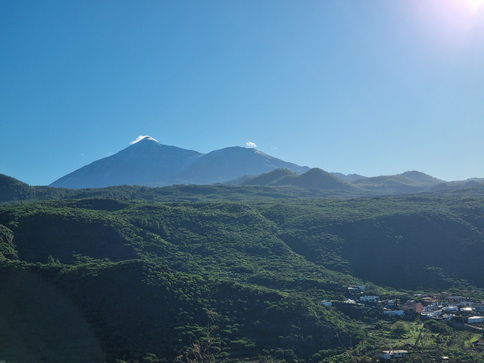 | Teneriffa Santiago del teide Teide volcano mit Baskenmütze | Teneriffa Santiago del teide Mirador del Teide Montanas Negras |